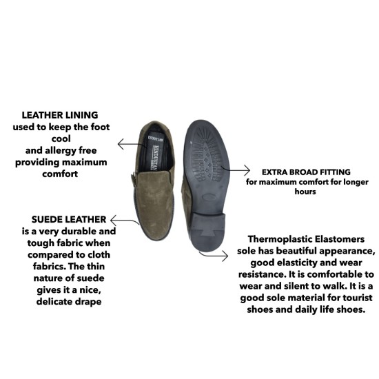 The soft and flexible suede not only feels good on your feet, but also looks stylish in a bright green colour that is sure to stand out. Whether you're dressing up our shoes are versatile enough to complement any outfit. The shoes have a sturdy sole that provides excellent grip and support, ensuring you can wear them comfortably all day. At Hindustan Leather, we pride ourselves on providing quality shoes that are genuine That you can Buy with confidence, knowing you're getting only the best.